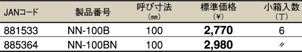 ・製品番号末尾Nはギザ付き の表は通常の価格体系と異なっています。 ※JANコードは、メーカーコード(4975180)を省き下6ケタを記載してあります。 ※標準価格は1丁あたりの価格となっております。